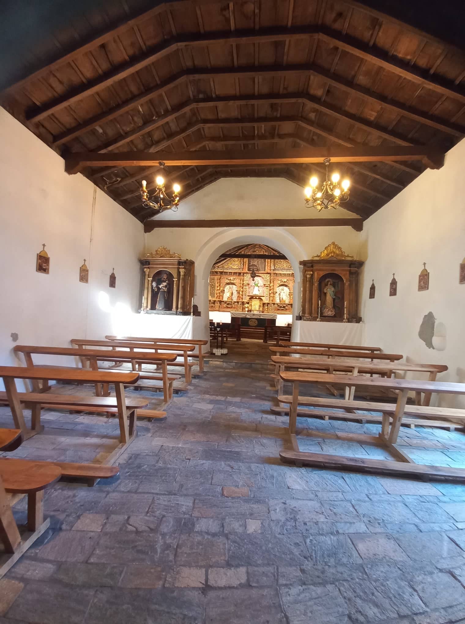 Ezzel az érzéssel léptem be a szemközti templomba, melyhez foghatót talán még sohasem láttam. A templom kis méretei, kora, egyszerűsége és eredetisége lenyűgöző volt. Az érték, ami kézzel fogható közelségben tárult elém tán nem is volt felfogható számomra. A több száz éves oltár, a keresztelőkehely, a harangtoronyba vezető rozoga kő lépcsősor, a harangok látványa a régmúltat idézte. A templom udvarában található kicsi temető kő keresztjein található apró szobrok önmagukban is remekművek voltak. Jézus fehér arcképmása szinte élettel megtelve sugallta a békét az itt nyugvó testeknek és lelkeknek. Igazi különlegesség volt számomra ez a látogatás.